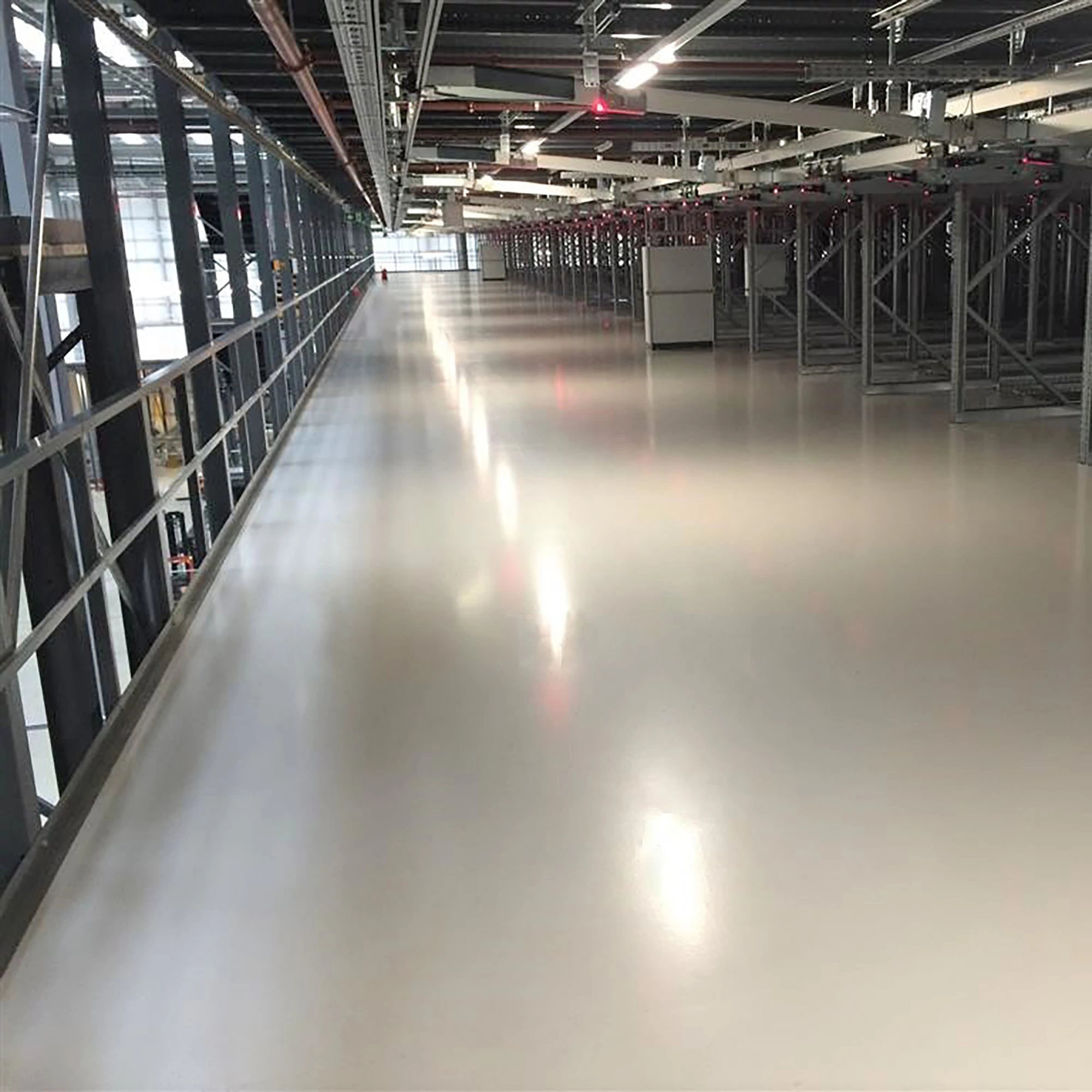 Very fast cure, slip resistant, MMA, self-levelling resin flooring system.