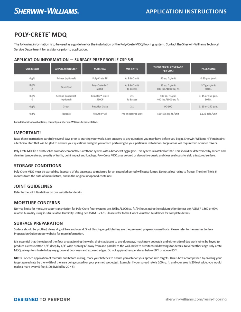 POLY-CRETE® MD is a 100% solids, aromatic, cementitious urethane system blended with graded silica and fine fillers.