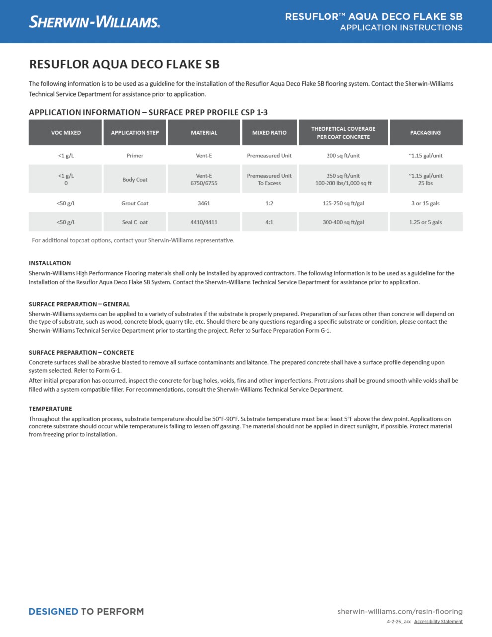 Resuflor™ Aqua Deco Flake SB combines vinyl chips in a water-based epoxy and is sealed with a clear coat of an abrasion-resistant, water-based polyurethane that is available in a high gloss or satin finish. Its innovative base chemistry also provides tough chemical-resistant protection.