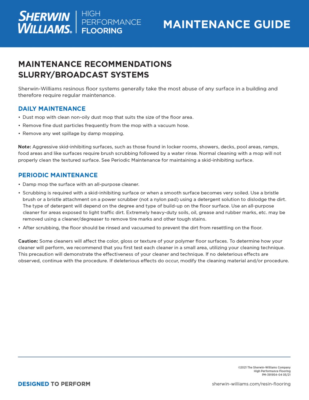 Formerly Trafficote 105 and Resuflor™ Topfloor SL23. Resuflor™ Gard SL is a high-build, chemical-resistant, protective self-leveling system.