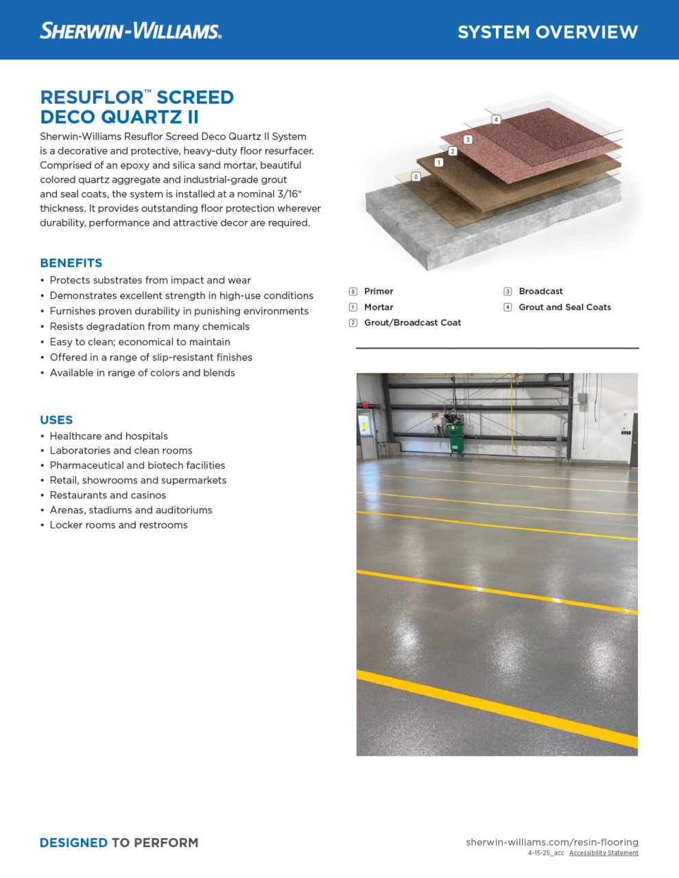 Formerly Heavy Duty Quartz - A six layer, nominal 1/4" decorative epoxy mortar system for use in resurfacing interior concrete floors.